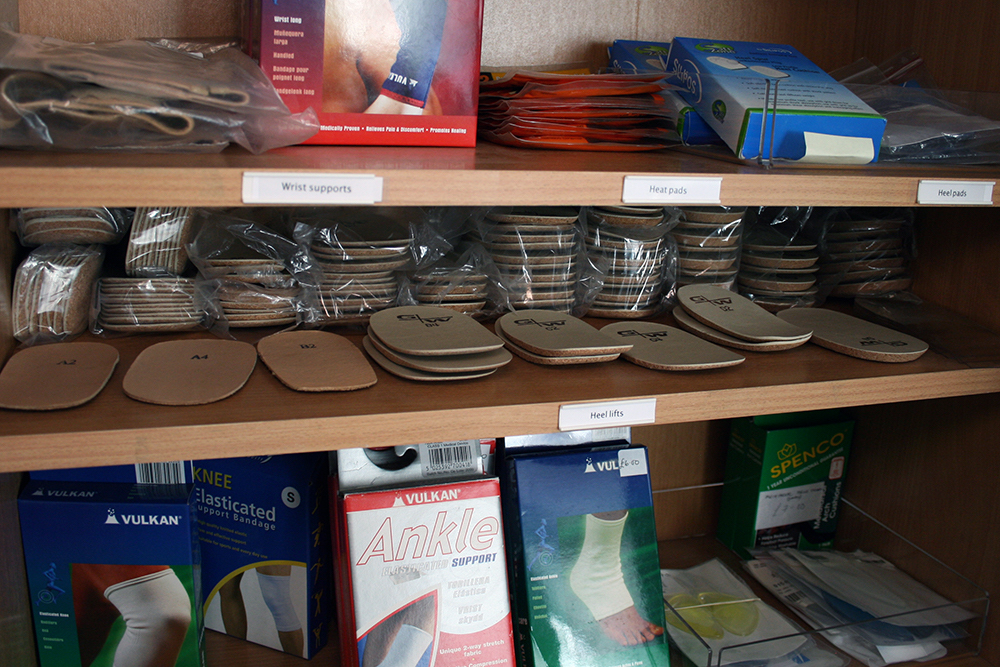 - Braces – knee, ankle, wrist etc. for strains & sprains